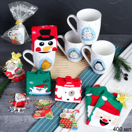 Подарочный набор Кружка 400 мл+ носки / CAT-517-mix /уп 72/ кружка новогодняя/ в подарочной упаковке 2 фото