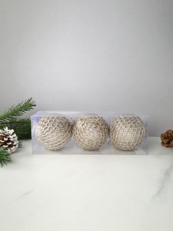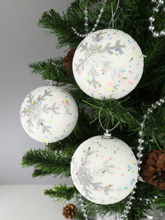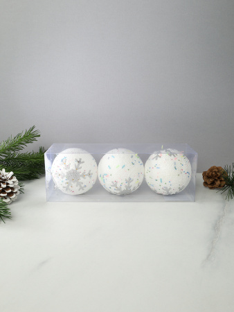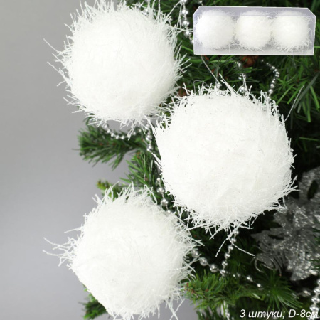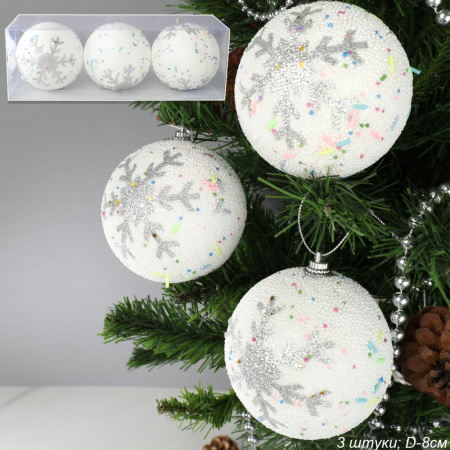 Новогоднее украшение Шары 3 штуки 8 см / WF-192 /уп 128/белые 3 фото