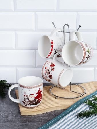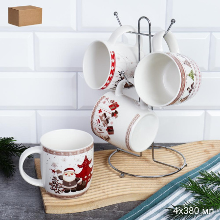 Кружка 4 штуки на металлстенде 380 мл / XP006-380 /кружка новогодняя/ в гофрокоробе 2 фото