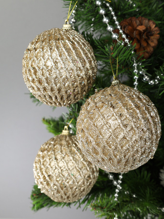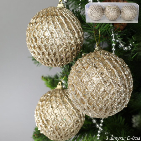Новогоднее украшение Шары 3 штуки 8 см / WF-183 /уп 128/золото 3 фото
