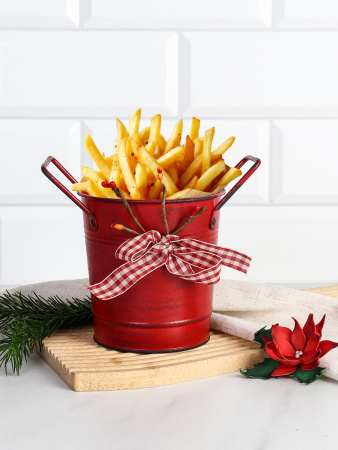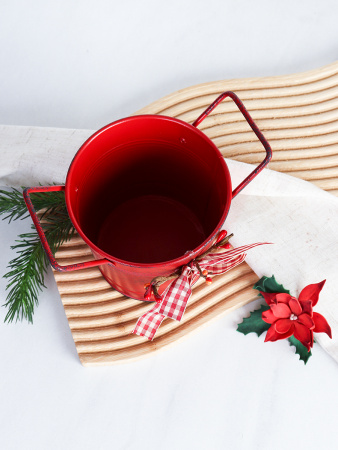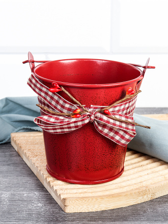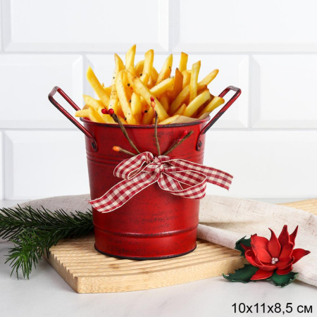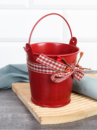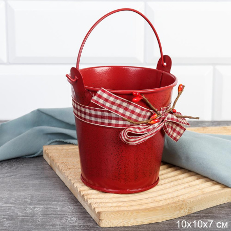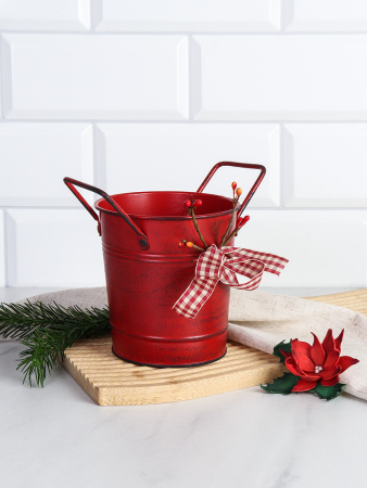 Ведерко для сервировки с эффектом старения 10х10х7см / YW08 /уп 144/ Новогоднее/ Красное 4 фото