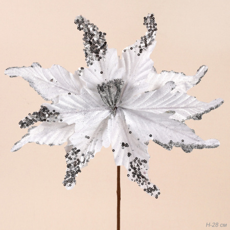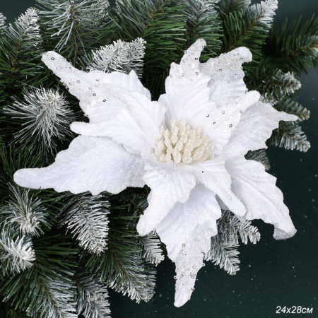Цветок декоративный Пуансеттия 24х28 см белый / NG33-9 /уп 60/600/ 3 фото