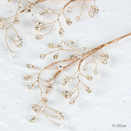 Ветка декоративная стеклярус 36 см / SA22784 /уп 150/600/золотая ветка 4 фото