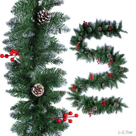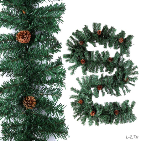 Гирлянда из елочных веток искусственная 2,7 метра 240 веток с шишками / WA-3 /уп 15/Новый год 3 фото