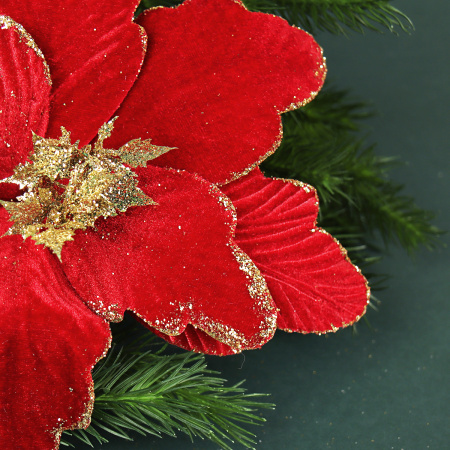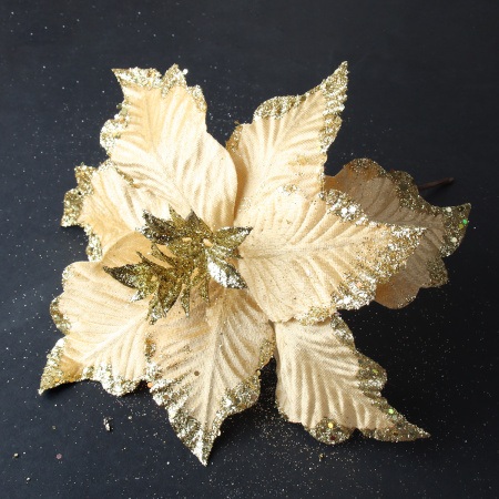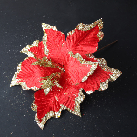 Цветок декоративный Пуансеттия красная с золотом / P15 /уп 48/480/ 3 фото