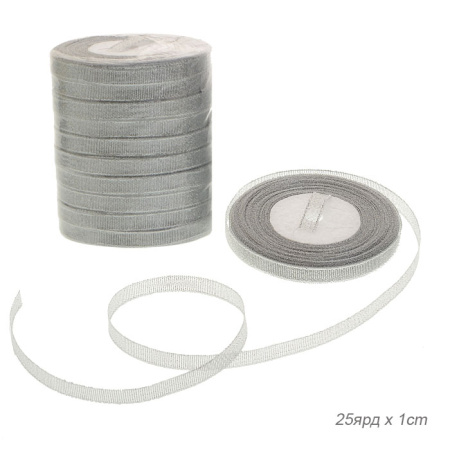 Лента органза декоративная 25ярд х 1см 10 штук набор / S633 /уп 120/серебро