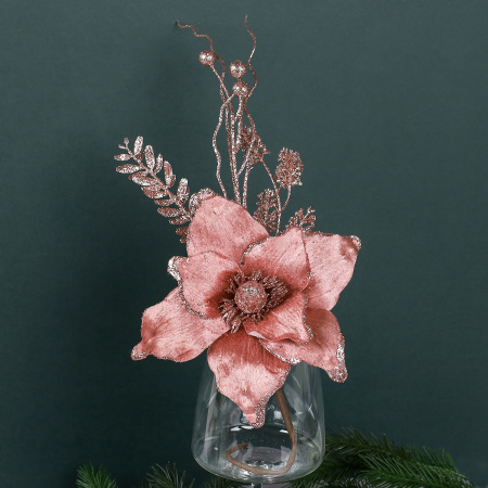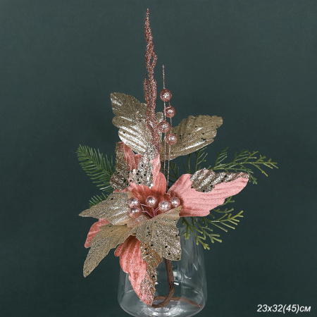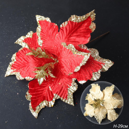 Цветок декоративный Пуансеттия 20 см / GLX01-2420 /уп 480/ 2 фото