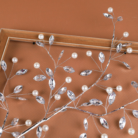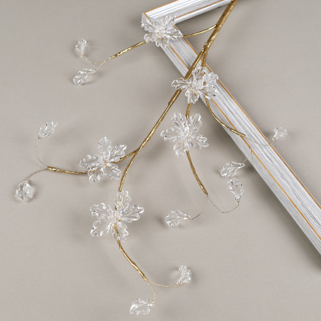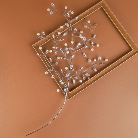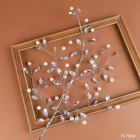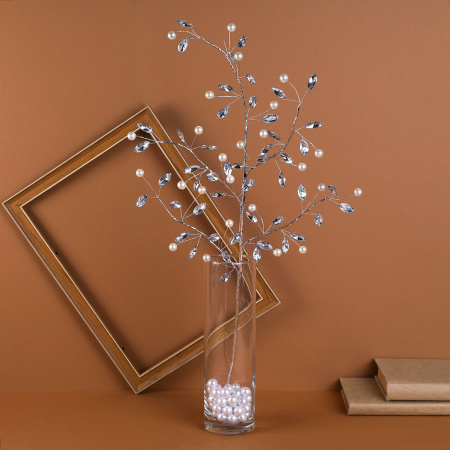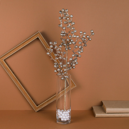 Ветка декоративная стеклярус 70 см / SA23489 /уп 360/серебро жемчуг 5 фото