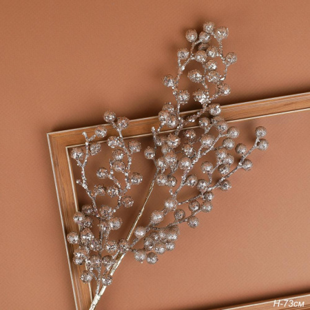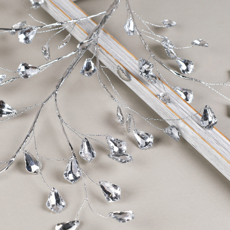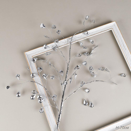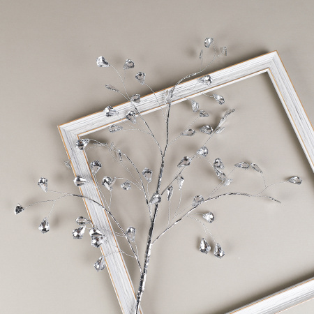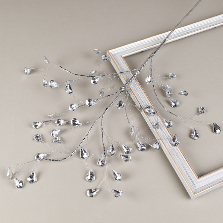 Ветка декоративная стеклярус 70 см / SA23490 /уп 324/серебро 5 фото