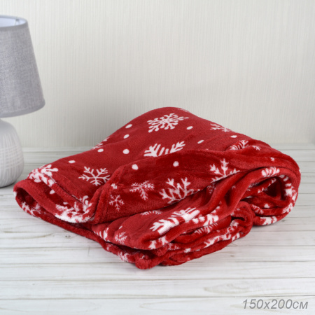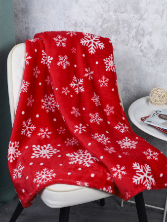 Плед флисовый 150х200 см Красный со снежинками / GP611-5 /уп 20/100/ 696143 новогодний 6 фото