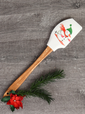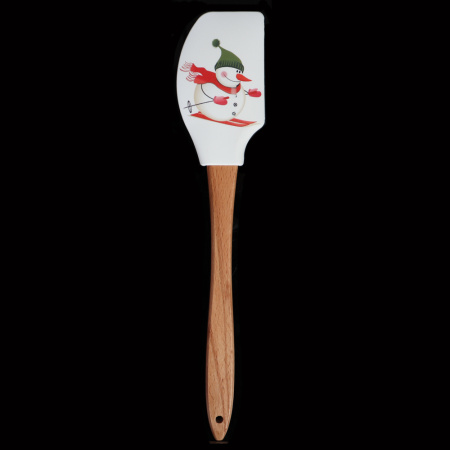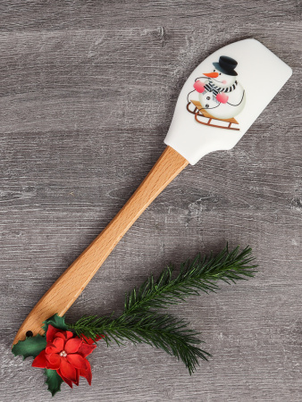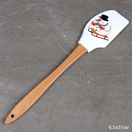 Лопатка кулинарная силиконовая 31х6,5 см с деревянной ручкой / H-211 /уп 130/ Новогодняя/ 0,071/ 0,044 6 фото