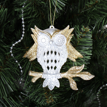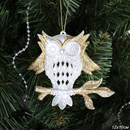 Новогоднее украшение Сова 12х10 см белый перламутр / LC24Y-006 /уп 80/320/ 2 фото