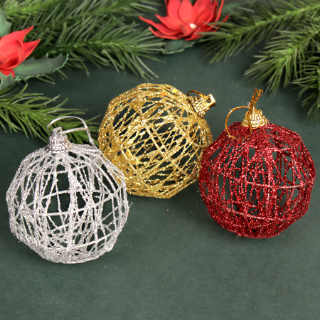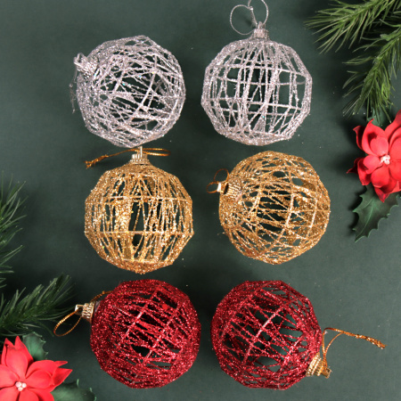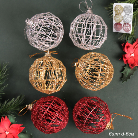 Елочное украшение Шар Ажурный 6 штук 6 см / SF2023-125 /уп 133/ зол. сер. кр. 4 фото