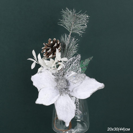 Цветок декоративный Пуансеттия 44 см белая / GLX01-2422 /уп 480/ 2 фото