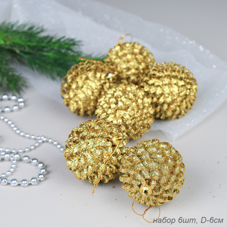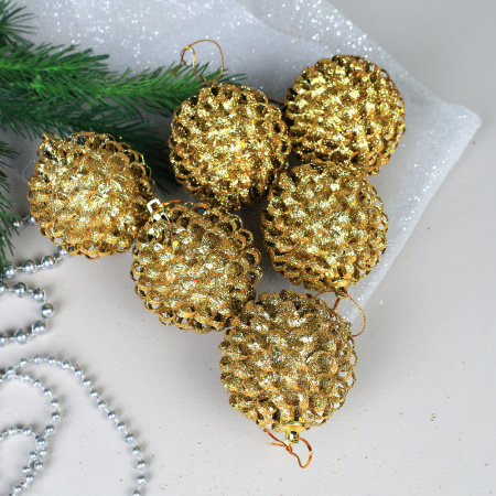 Елочное украшение Шишки 6 штук 6 см / SF2023-178 /уп 133/ золото 2 фото