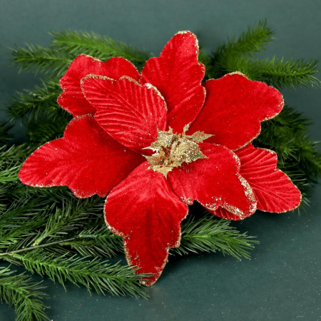 Цветок декоративный Пуансеттия 20 см красная / CTX12-116 /уп 80/480/ 3 фото
