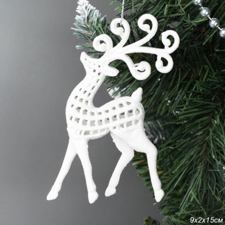 Новогоднее украшение Олень 13 см / G683 /уп 800/белый 2 фото