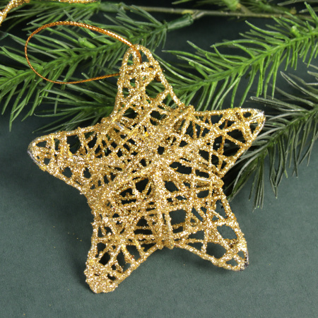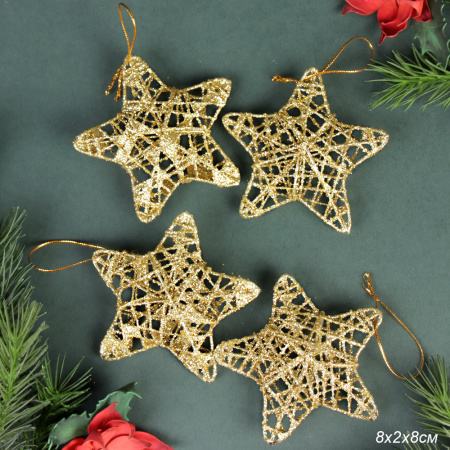 Елочное украшение Звезда Ажурная 4 штуки 8 см / SF2023-111 /уп 120/ золото 2 фото