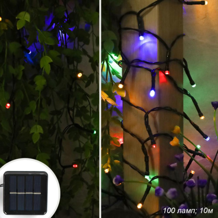 Гирлянда с питанием от солнечных элементов 10 м 100 лампочек 6 режимов / PM-5560/1 /уп 100/разноцветный 4 фото