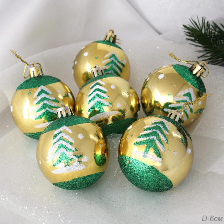 Елочные шары 6 штук 6 см / H011 /уп 120/ золото 3 фото