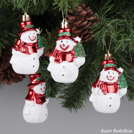 Новогоднее украшение Снеговик 4 штуки 9х5 см / WF-171 /уп 225/ 5 фото
