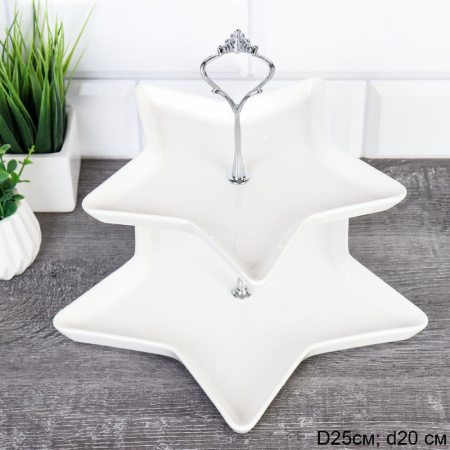 Ваза для фруктов 2-х ярусная 20/25 см Звезда / R-635 /уп 11/ Новогодняя костяной фарфор