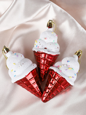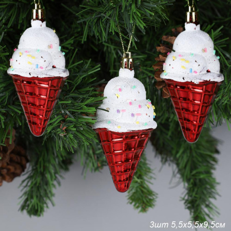 Новогоднее украшение Мороженое 3 штуки 4,5х9,5 см / WF-206 /уп 192/ 4 фото