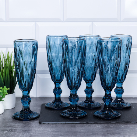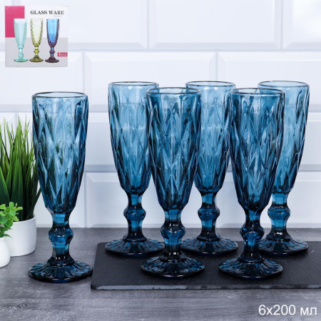 Бокал для шампанского 6 штук 200 мл / KF-036-3 /уп 8/ синий 2 фото