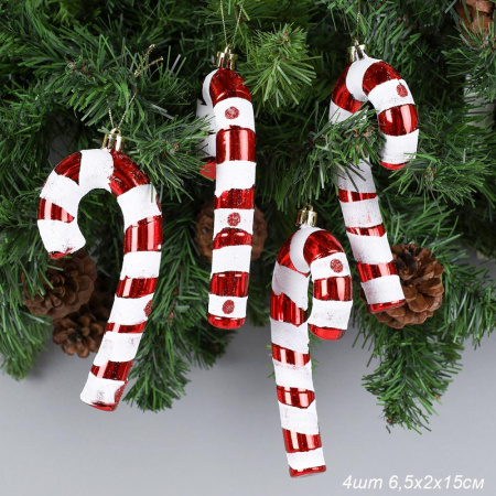 Новогоднее украшение Леденец трость 4 штуки 15 см / WF-190 /уп 192/ 3 фото