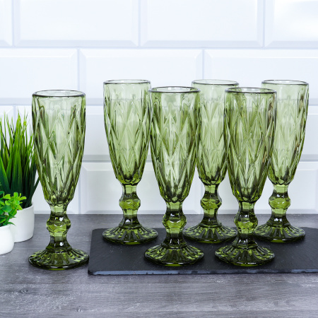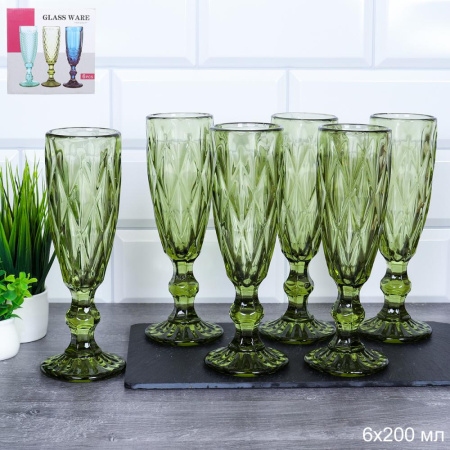 Бокал для шампанского 6 штук 200 мл / KF-036-1 /уп 8/ зеленый 2 фото