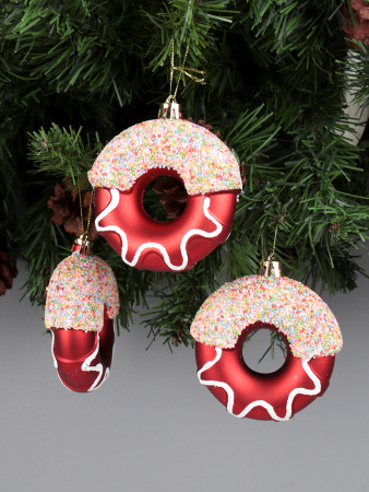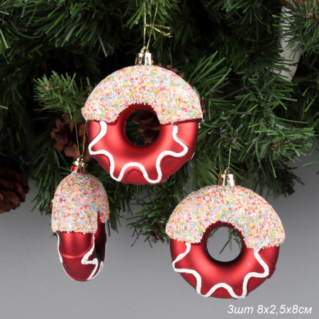 Новогоднее украшение Пончик 3 штуки 8 см / WF-203 /уп 182/ 5 фото