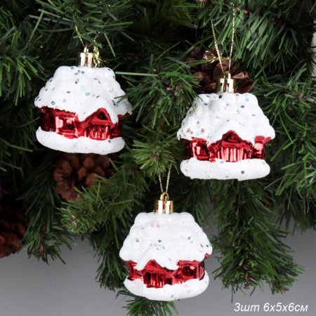 Новогоднее украшение Домик 3 штуки 6 см / WF-167 /уп 200/ 4 фото