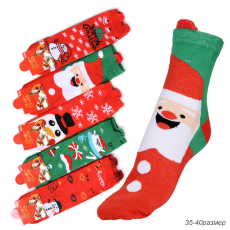 Носки женские р. 35-40 новогодний / L700 /уп 10/120/ ОДНА ПАРА