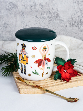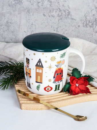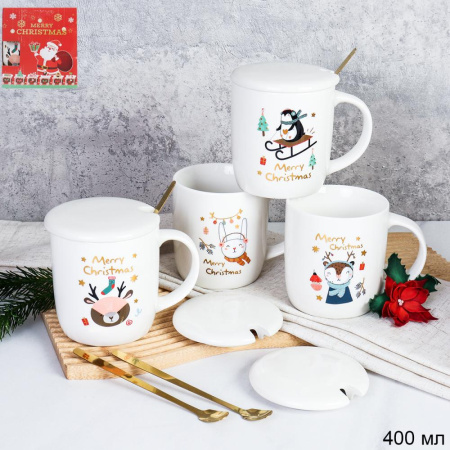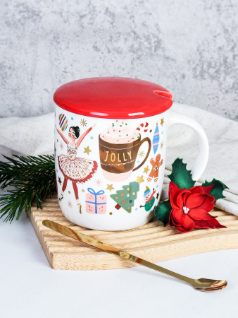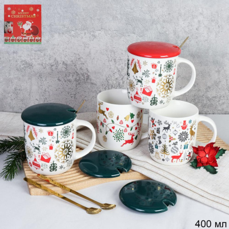 Кружка новогодняя с крышкой, ложка /400 мл/ HB-258 /уп 60/ 6 фото