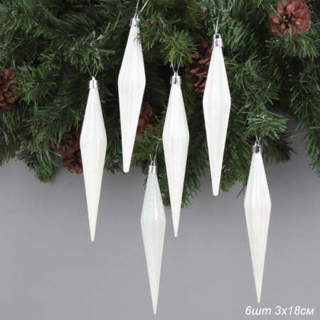 Новогоднее украшение Сосульки 6 штук 18 см / WF-199 /уп 168/белые 5 фото
