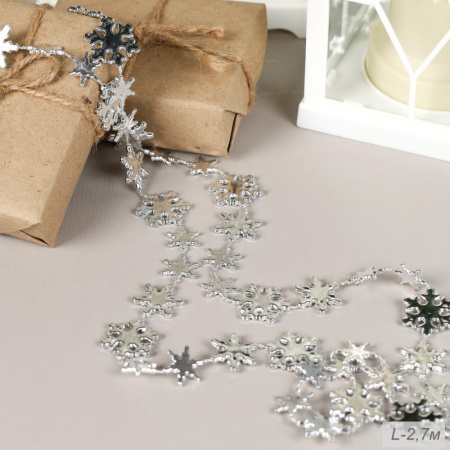 Новогодние бусы на елку Снежинки 2,7 м / DW-1369 /уп 12/360/ 4 фото