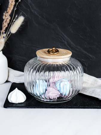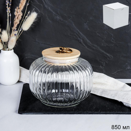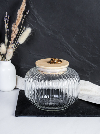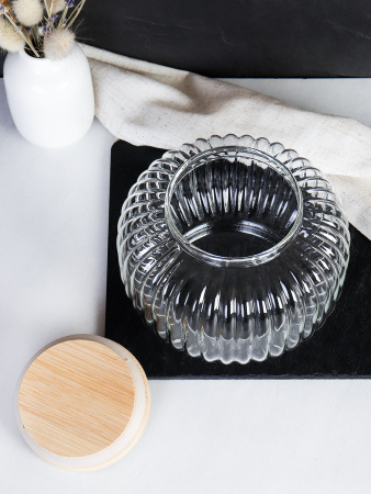 Банка для сыпучих бамбуковая крышка Бочонок рифленая 850 мл / 9544 /уп 60/ 5 фото