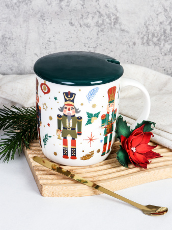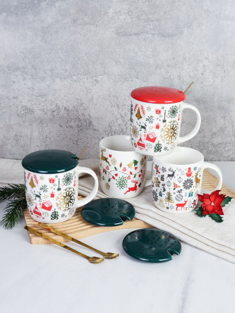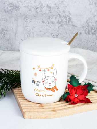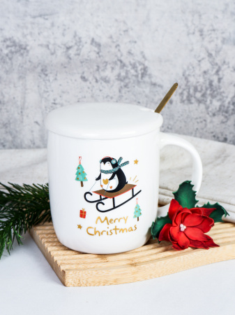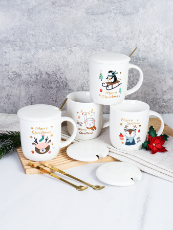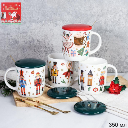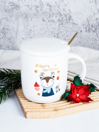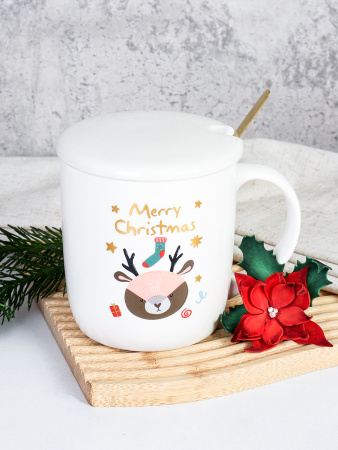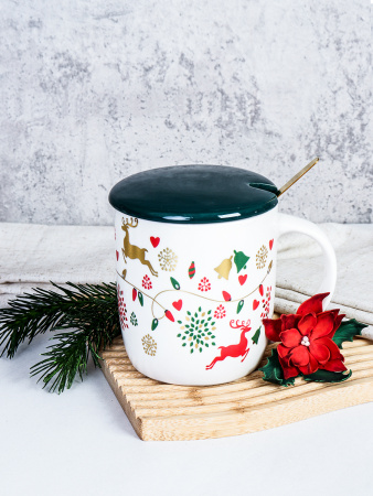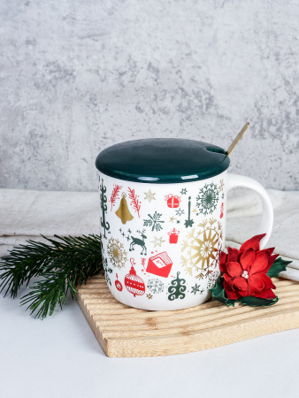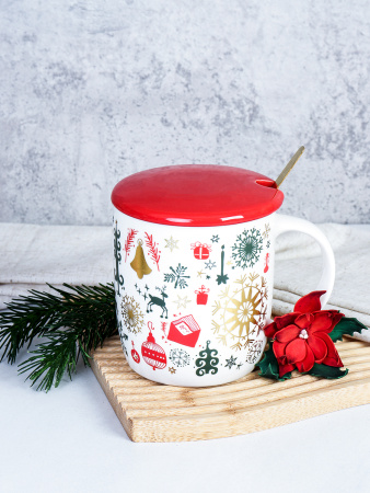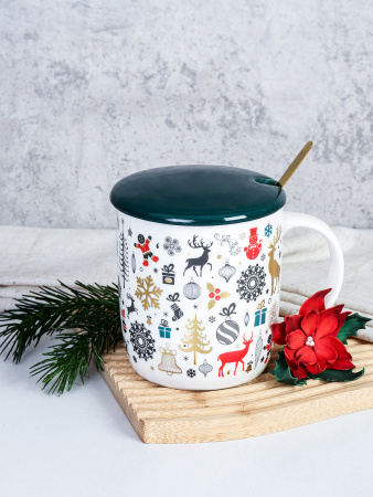 Кружка новогодняя с крышкой, ложка /350 мл/ HB-256 /уп 60/ 6 фото