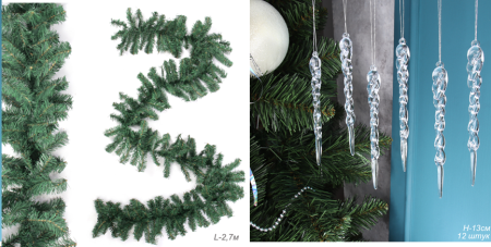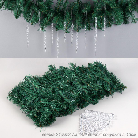 Гирлянда из елочных веток искусственная 2,7 метра 200 веток 24 см ширина+СОСУЛЬКИ набор  / WA-200 / уп 40/Новый год 4 фото