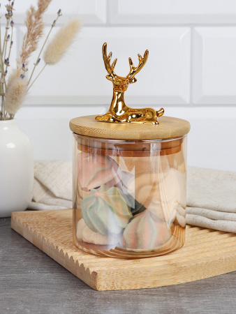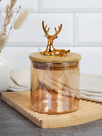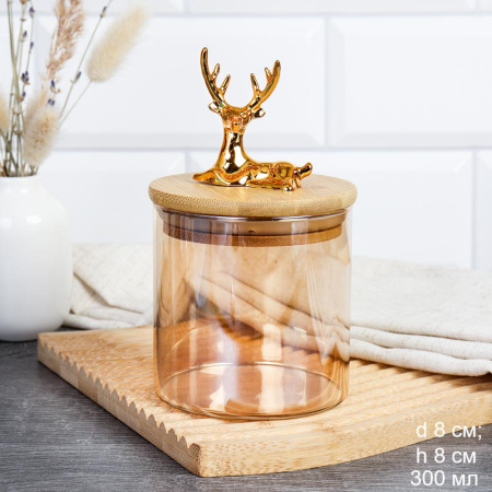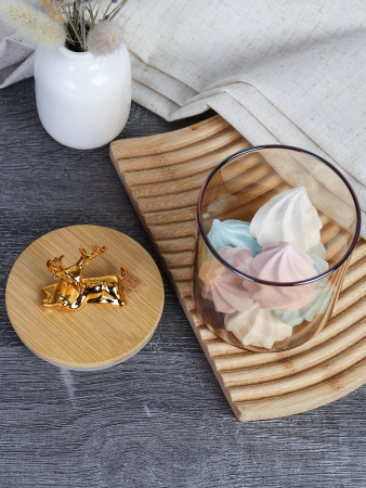 Банка для сыпучих бамбуковая крышка с фигуркой 350 мл 8х8 см / 9859 /уп 120/ новогодняя 4 фото