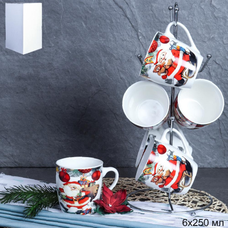 Кружка 6 штук на металлстенде 250 мл УПАКУЙ САМ / XP013 / кружка новогодняя 2 фото