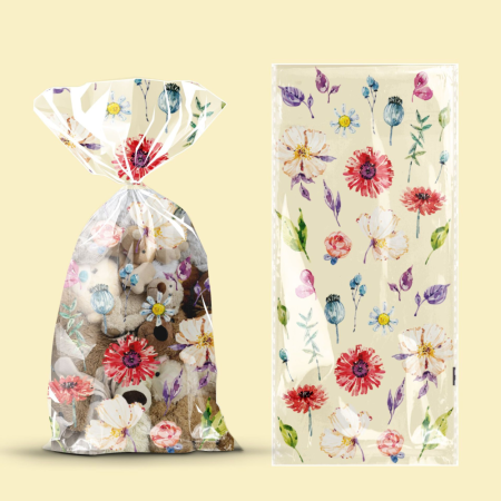 Пакет подарочный набор 50 штук 13х27 Цветы / NG1063 /уп 50/