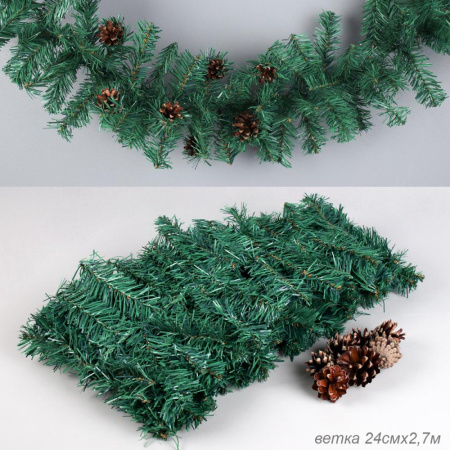 Гирлянда из елочных веток искусственная 2,7 метра 200 веток 24 см ширина+ШИШКИ набор  / WA-200 / уп 40/Новый год 4 фото