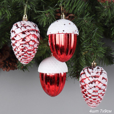 Новогоднее украшение Шишки 4 штуки 9х7 см / WF-170/уп 72/ 4 фото