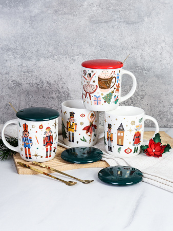 Кружка новогодняя с крышкой, ложка / HB-A2096 /уп 60/ 6 фото