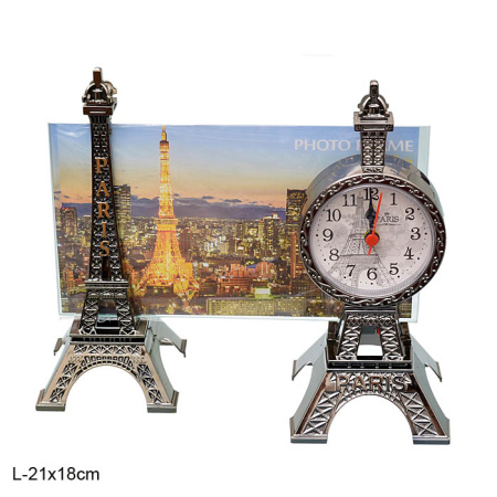 Часы фоторамк Эйфелева башня 21 см / JX992B /уп 72/