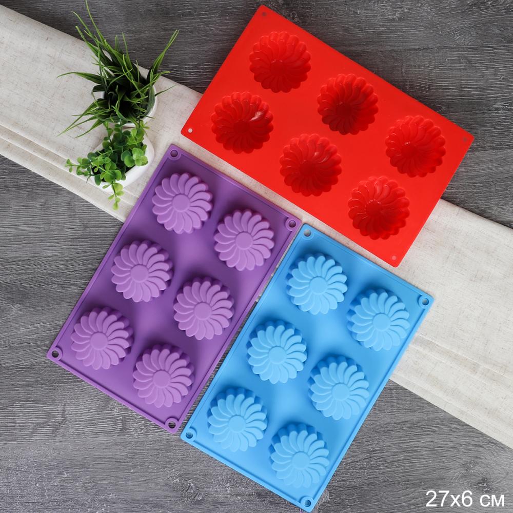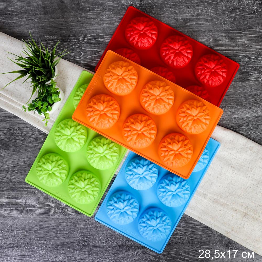 Форма для выпечки 6 ячеек силиконовая Цветы Хризантема 7х3,5 см / V-940 / уп 200/ 0,11/ 28,4*17*3,5 5 фото