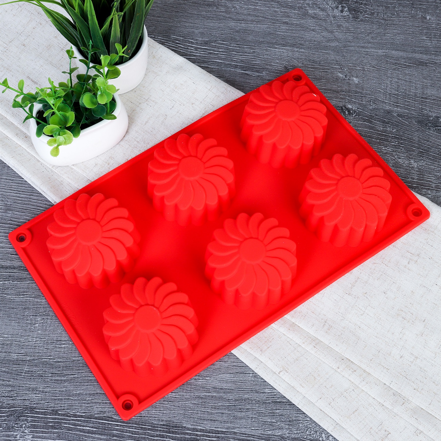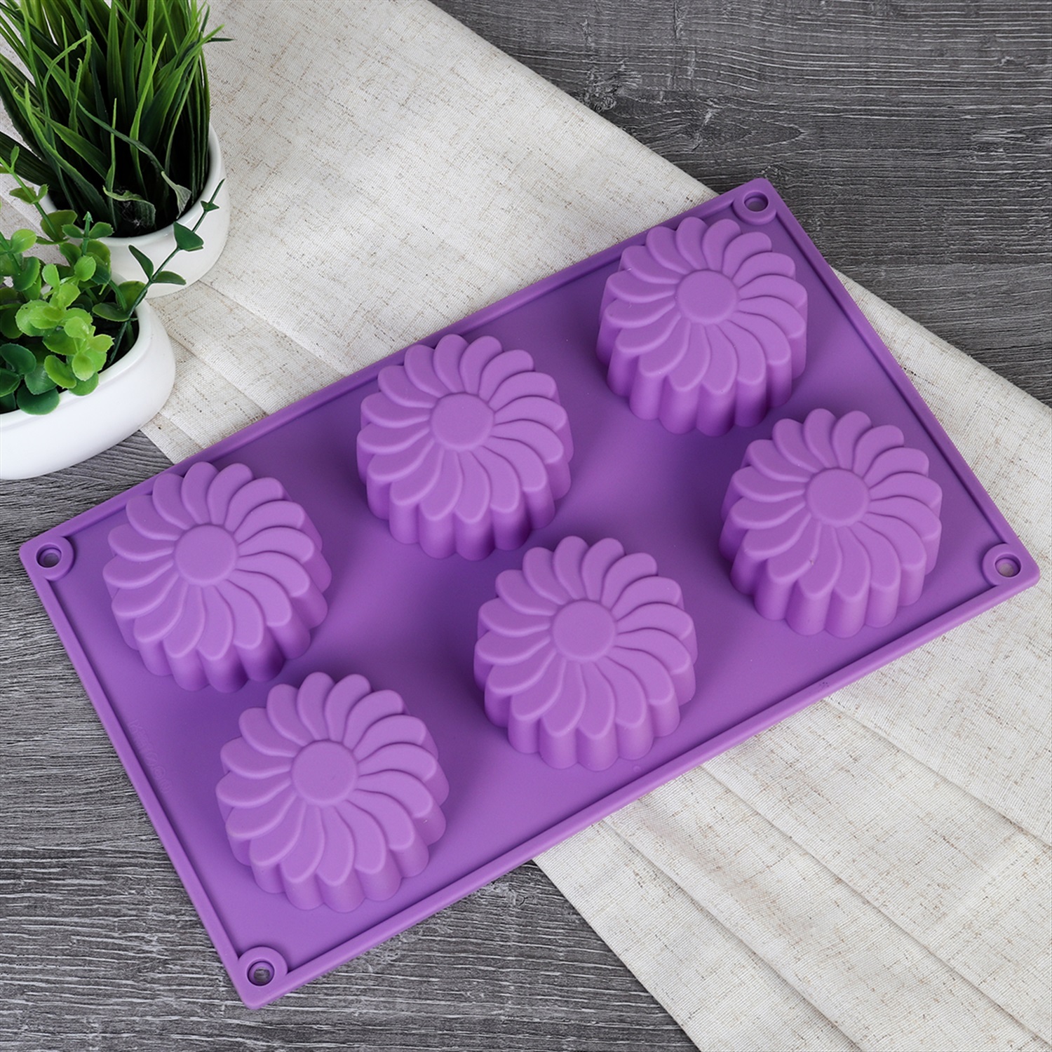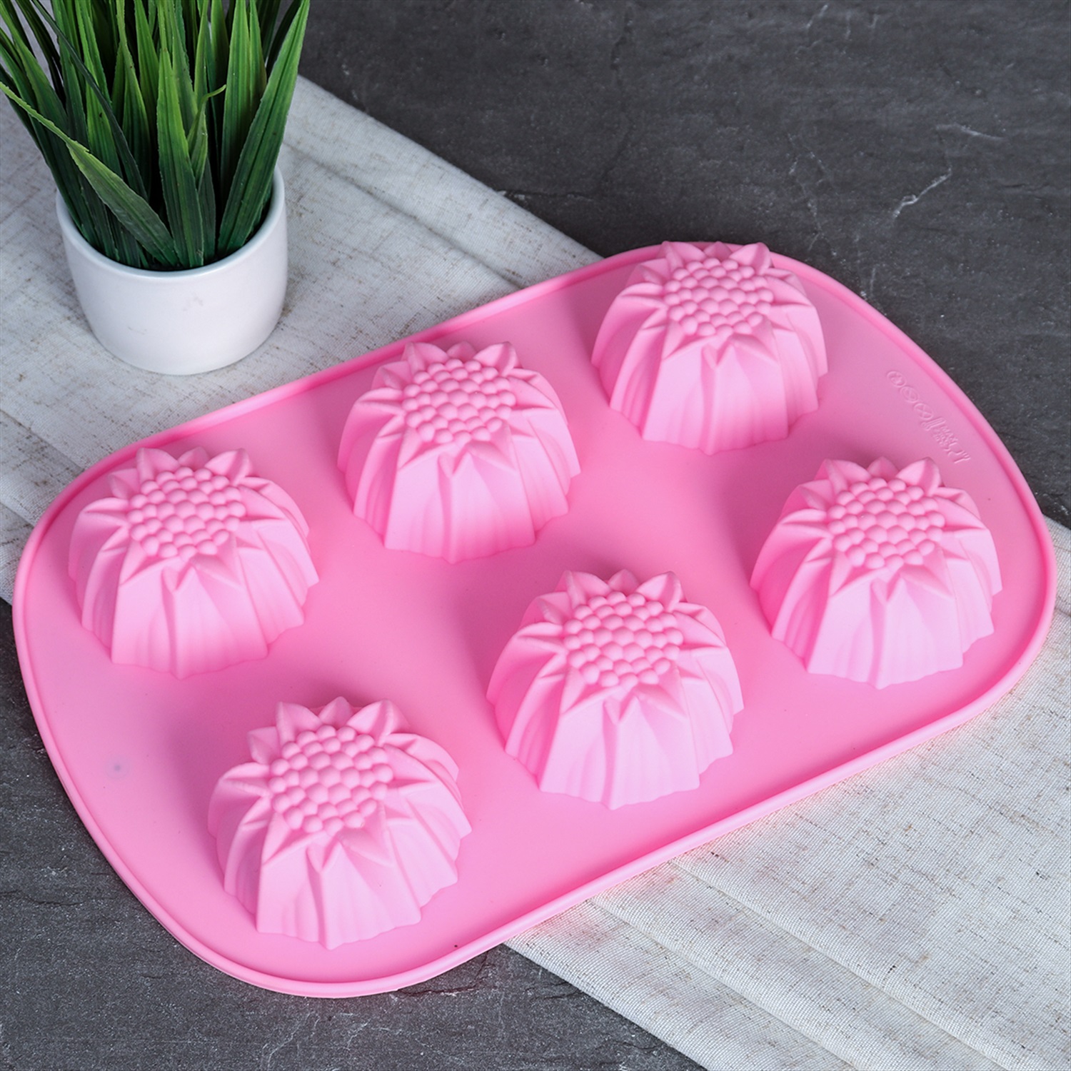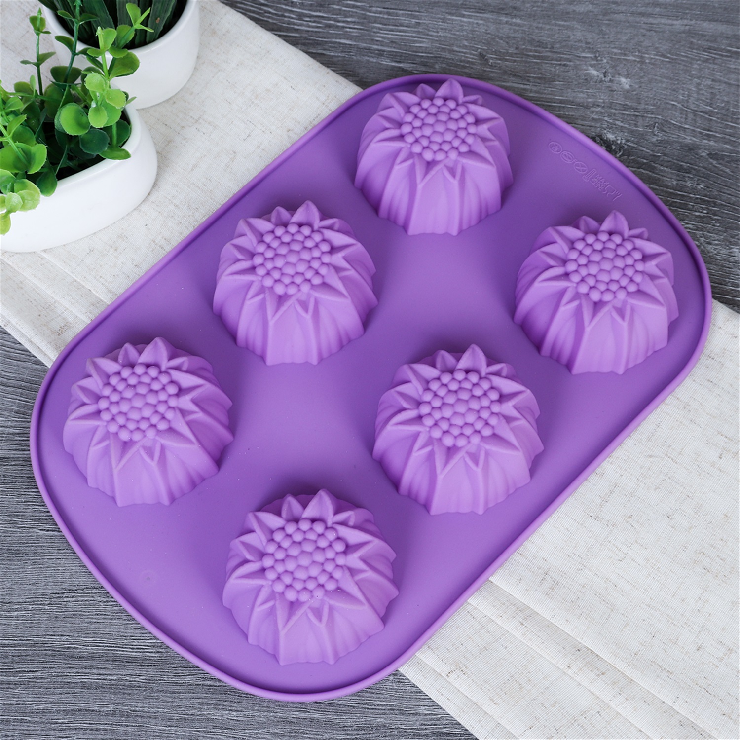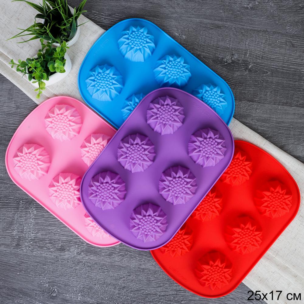 Форма для выпечки 6 ячеек силиконовая Цветы Подсолнухи 3,5 см / HL-071 / уп 200/ 0,1/ 25*17*3,5 5 фото