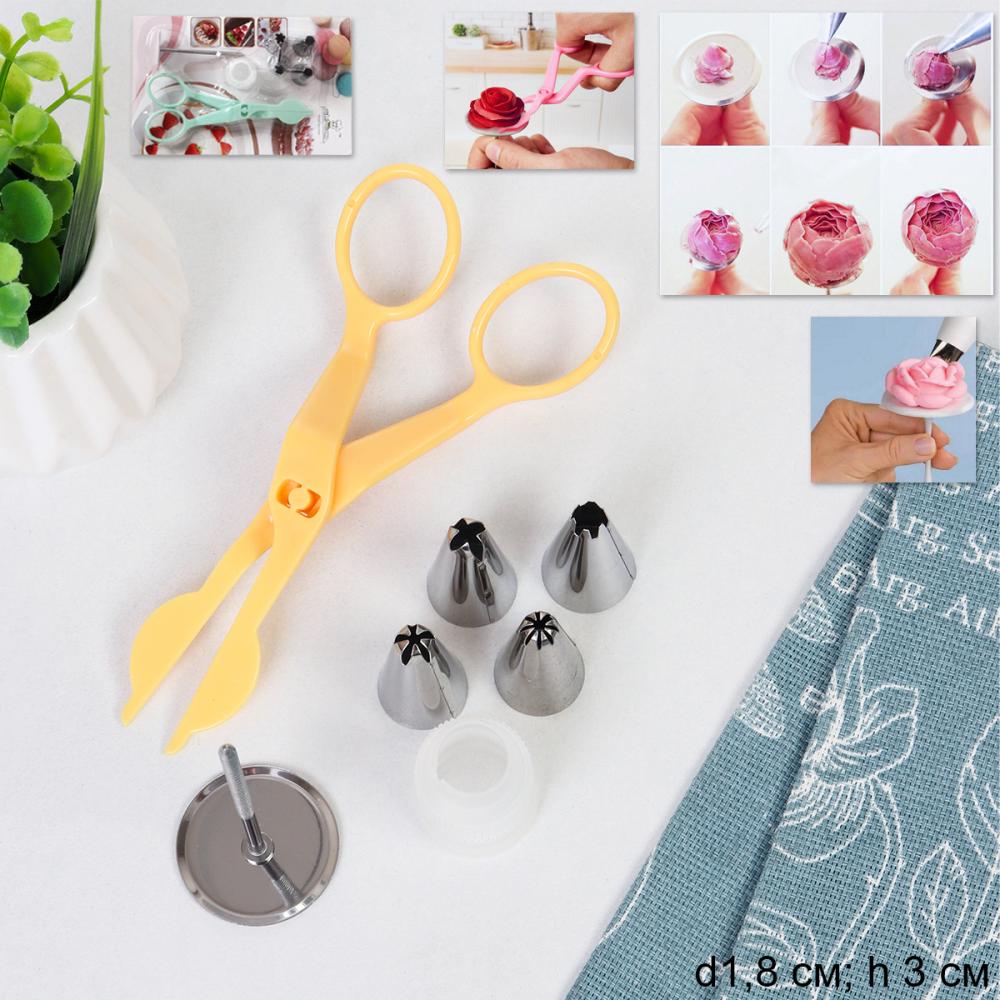 Кондитерские насадки малые 4 штуки с адаптером /основание 18 мм / 149NA-11-3 /уп 288/ кондитерский гвоздь и ножницы для переноски цветов в комплекте 2 фото