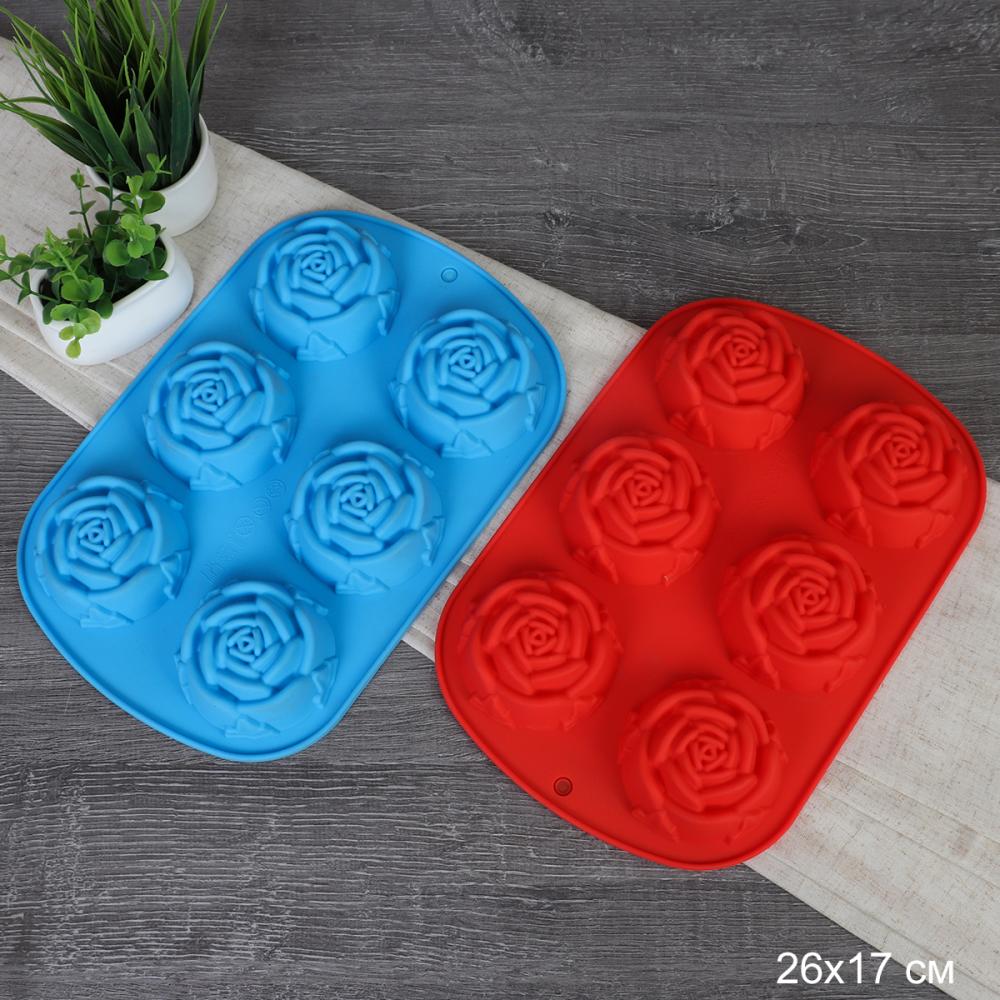 Форма для выпечки 6 ячеек силиконовая Цветы Роза 6,5х3,5 см / HL-058 / уп 200/ 0,105/ 25*16,5*3,5 3 фото